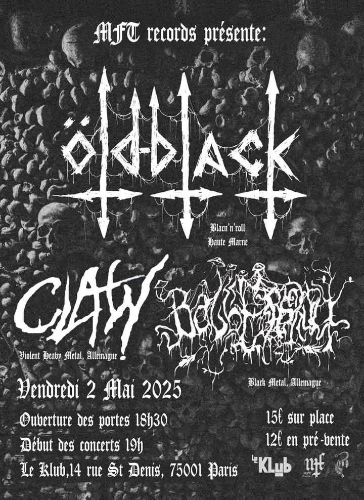 Balberskult, et Claw, "collectif" allemand, du Black metal pour Balberskult, du Blackened/Thrash/Heavy-metal pour Claw (batteur/chant) 2x pick Claw Old Black, du Black metal Black n'roll de Nancy avec des origines de la Réunion, Tampon comme moi. Baguette signé Fontaine Thierry, setlist et CD signed