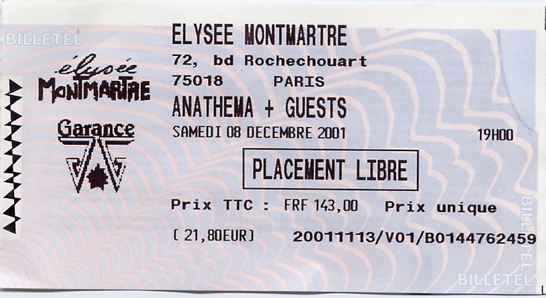 Anathema, Elysée Montmartre, Paris (FR) - Dec 8, 2001