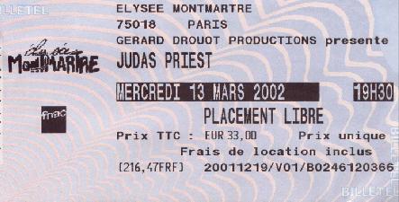 Judas Priest, Elysée Montmartre, Paris (FR) - Mar 13, 2002
