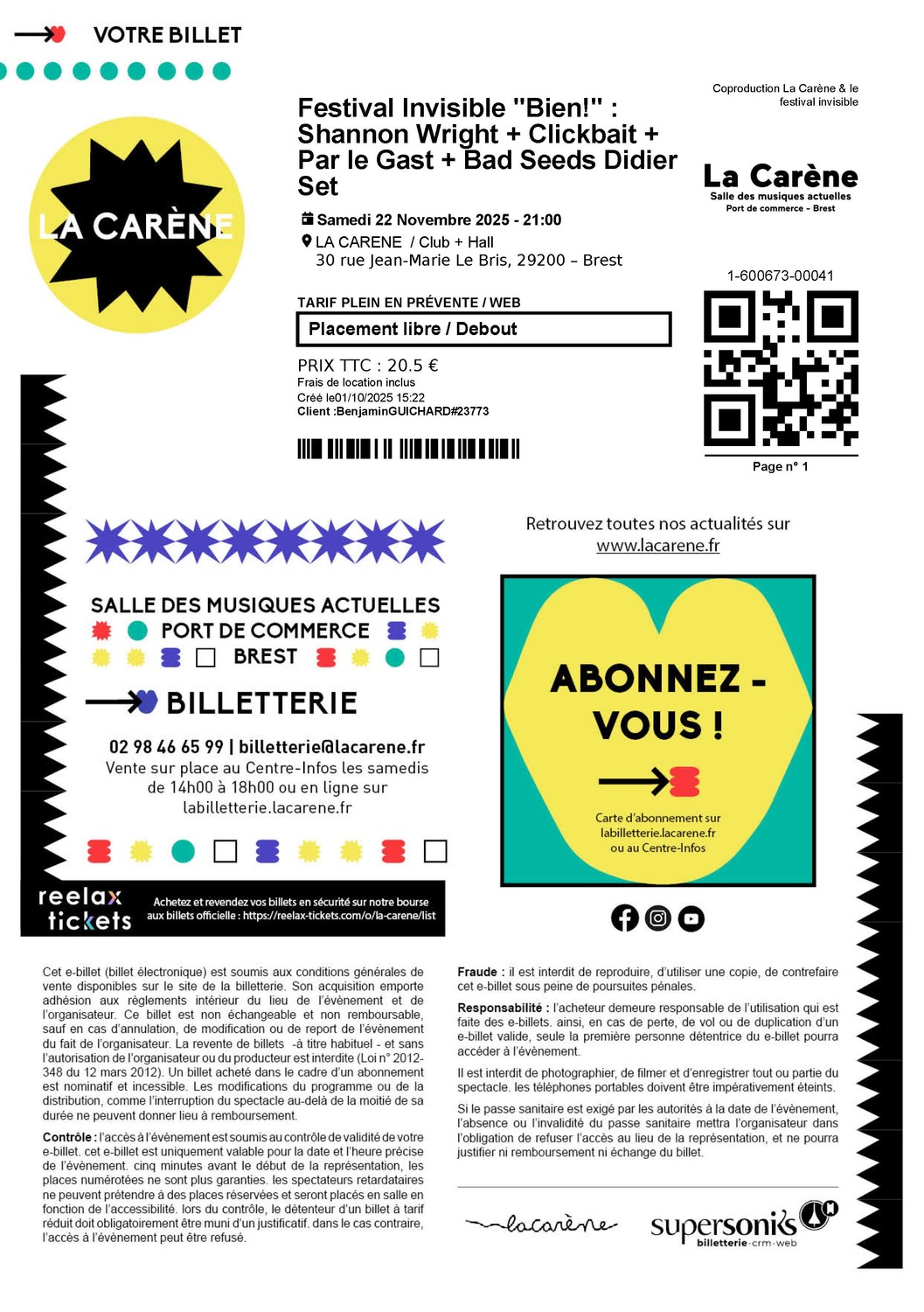 Festival Invisible n°20 : Shannon Wright, La Carène, Brest (FR) - Nov 22, 2025