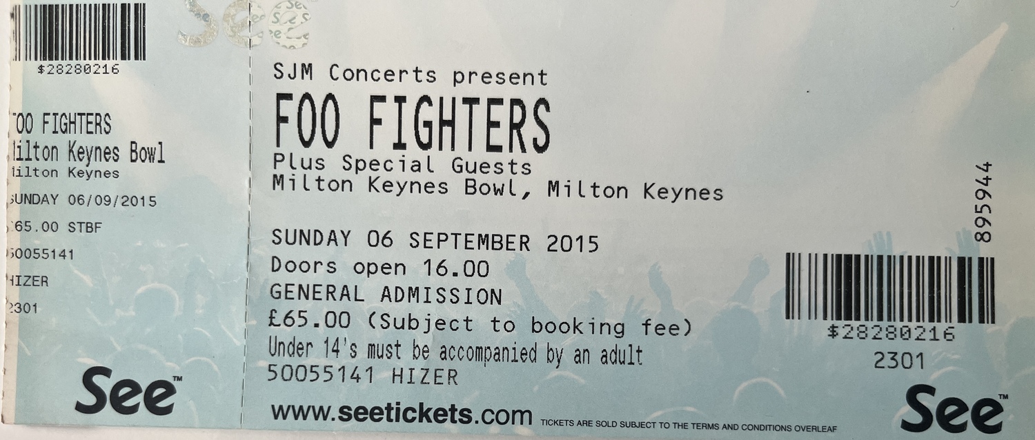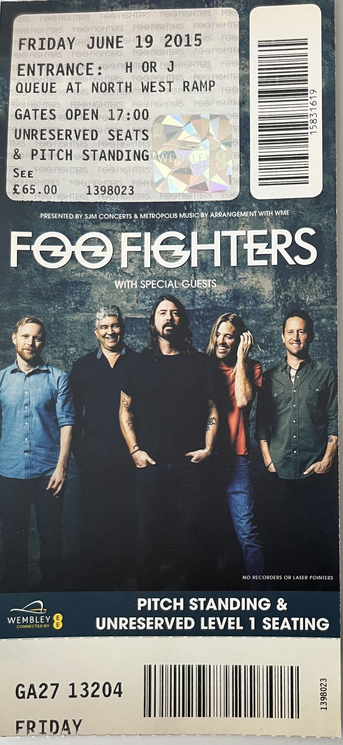 This concert was supposed to be at Wembley Stadium, on June 19th, on the actual day of my 50th birthday. But one week earlier in Sweden, Dave Grohl fell off a stage and broke his leg. He then after going to hospital, came back and completed the gig! What a G! Unfortunately, the gig on my birthday was cancelled! My birthday was fucked! This was the rescheduled gig. Dave was still in a cast. But despite that, he still rocked like a madman in a bespoke throne! Could a man possibly be cooler?? The gig was epic, as were the sets by Royal Blood and the timeless Iggy Pop.