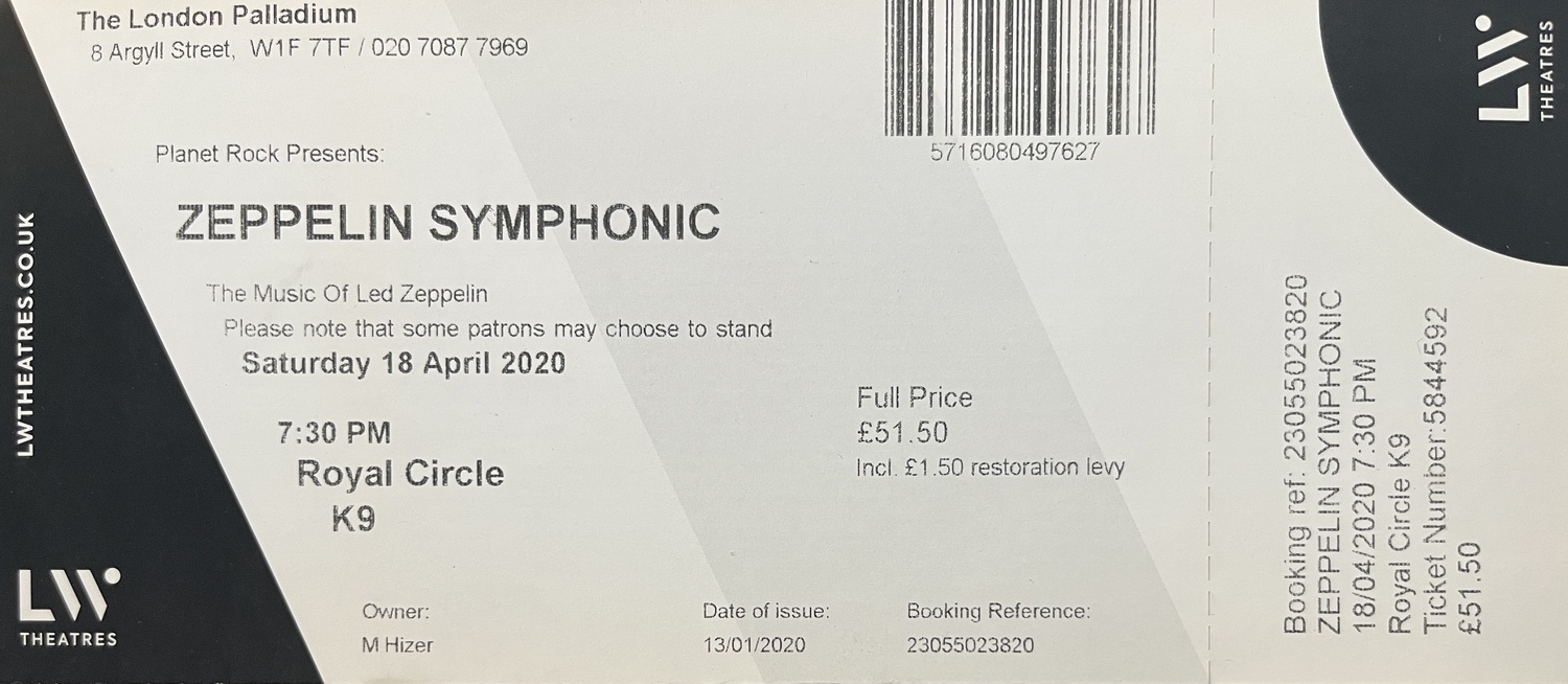 This concert was cancelled when the UK shut down due to the world Covid 19 pandemic.