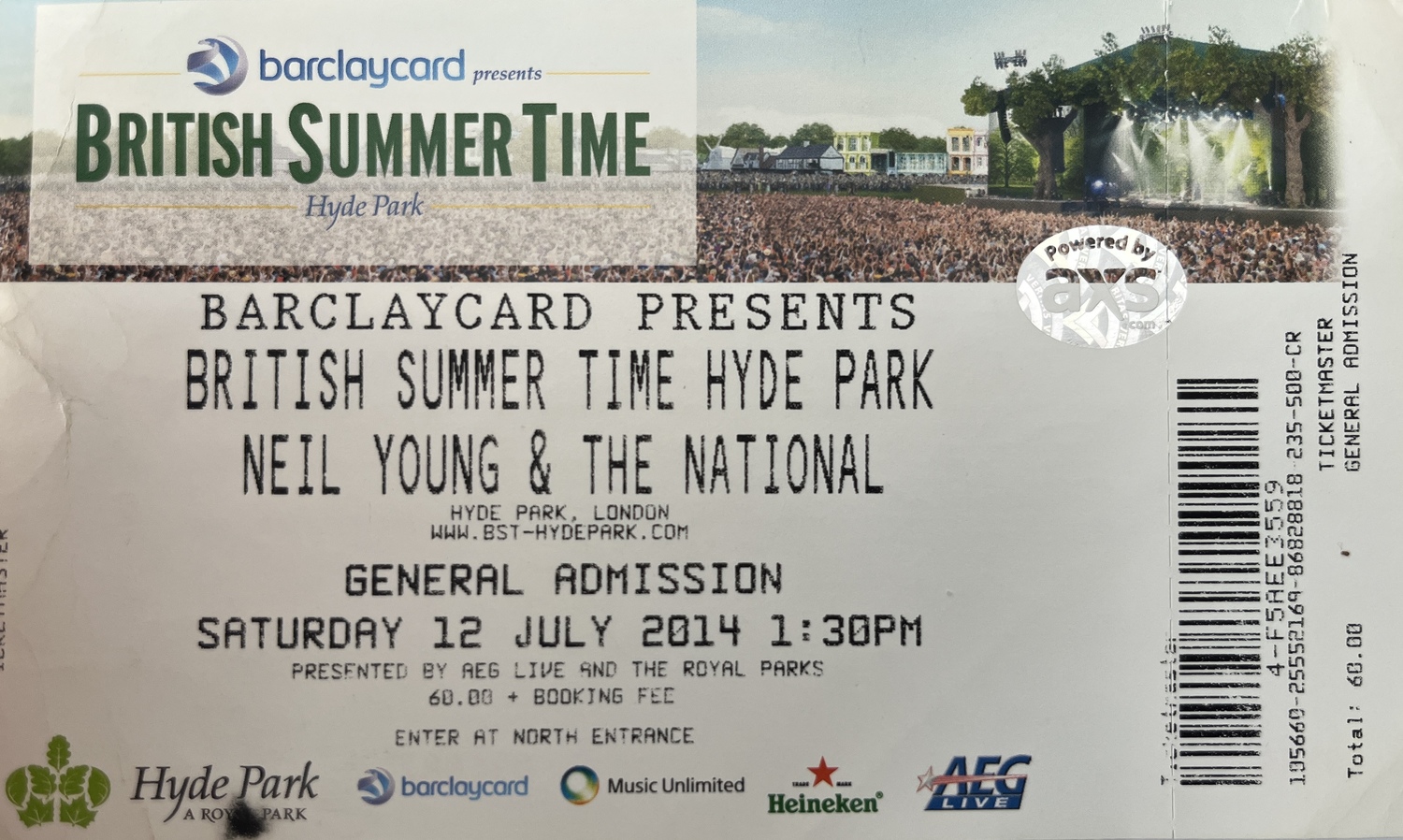 Neil Young is someone that I wanted to see so much, that I was happy to pay the money purely to see him and Crazy Horse. "Well duh!'' I can hear you say, but I'm referring to the fact that I was completely disinterested and unwilling to listen to any of the support acts, all of which I'd never heard of and had absolutely no desire to acquaint myself with! Fortunately, my cousin, Lee and pal, Barry were in total agreement and so we turned up at the park, maybe a half hour before Neil Young was due to come on!