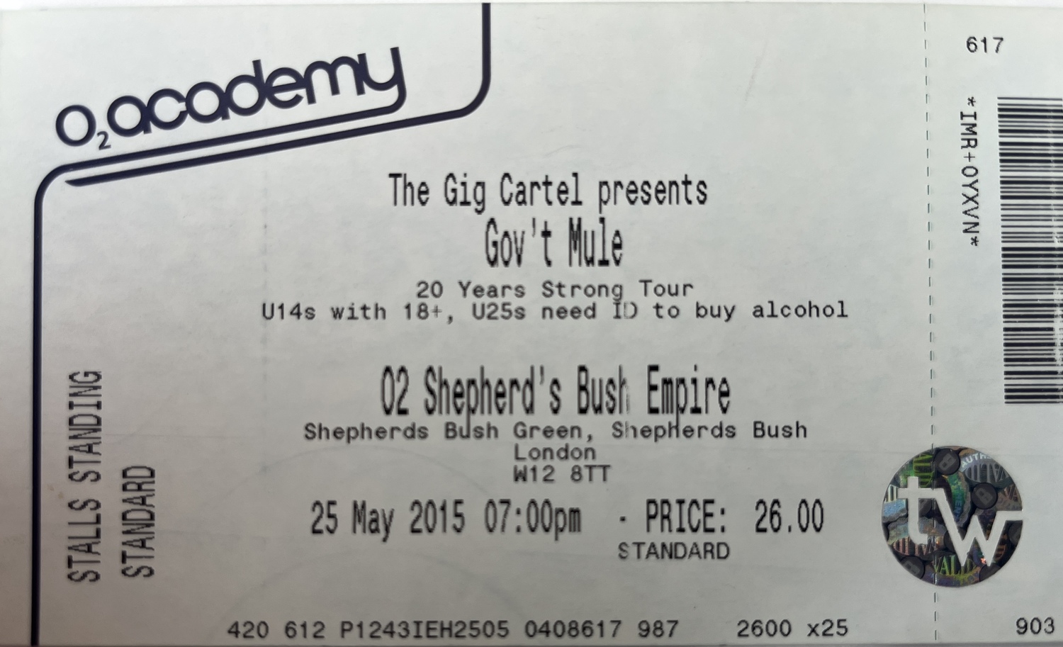 20 Years Strong Tour : Gov't Mule, O2 Shepherd's Bush Empire, London (GB) - May 25, 2015
