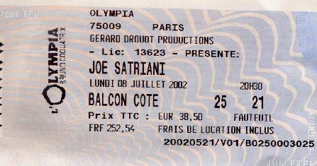 Joe Satriani, Olympia, Paris (FR) - Jul 8, 2002