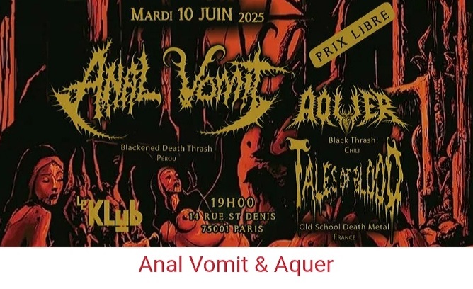 Demoniac Flagellations 20th annivesary Europe Tour 2025 : Anal Vomit, le Klub, Paris (FR) - 10 juin 2025