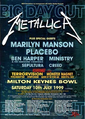 Big Day Out : Metallica, Milton Keynes National Bowl, Milton Keynes (GB) - 10 juil. 1999