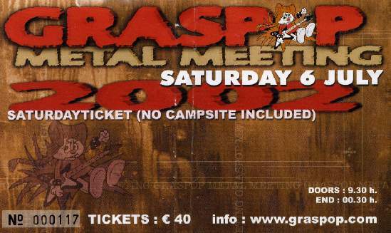 Graspop Metal Meeting 2002 : Slayer, Boeretangsedreef, Dessel (BE) - 6 juil. 2002