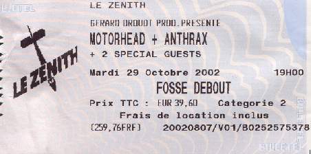 Motörhead, Le Zénith, Paris (FR) - 29 oct. 2002