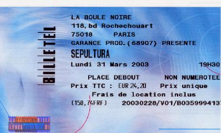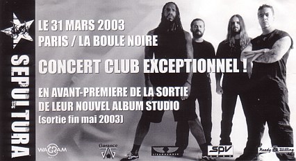 Sepultura, Boule Noire, Paris (FR) - 31 mars 2003