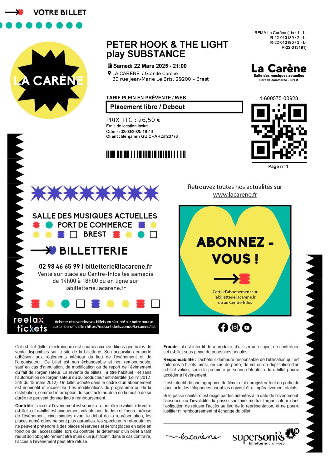 Peter Hook & The Light, La Carène, Brest (FR) - 22 mars 2025