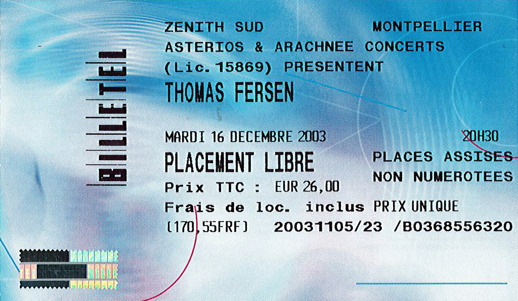 Thomas Fersen, Zenith sud, Montpellier (FR) - 16 déc. 2003