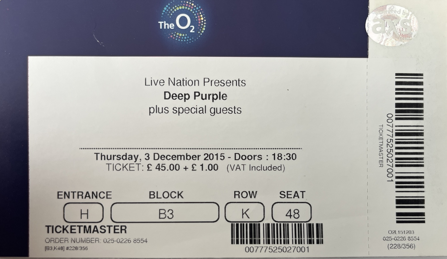 Deep Purple, O2 Arena, Greenwich (GB) - 3 déc. 2015